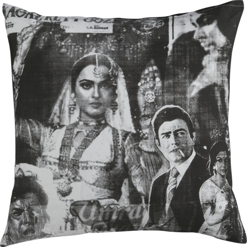 Bombay blockbuster. Coming to a sofa or chair near you. Bollywood film clip, remastered in black and white on 100% cotton. Hidden zipper closure; feather-down insert. Machine wash. Imported.