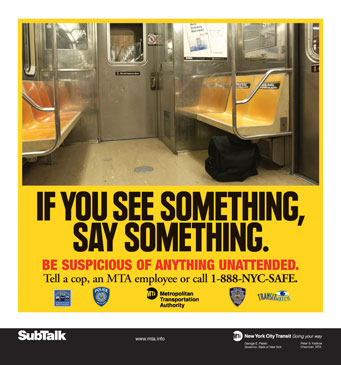 The MTA and the NYPD's campaign for, "See Something Say Something".